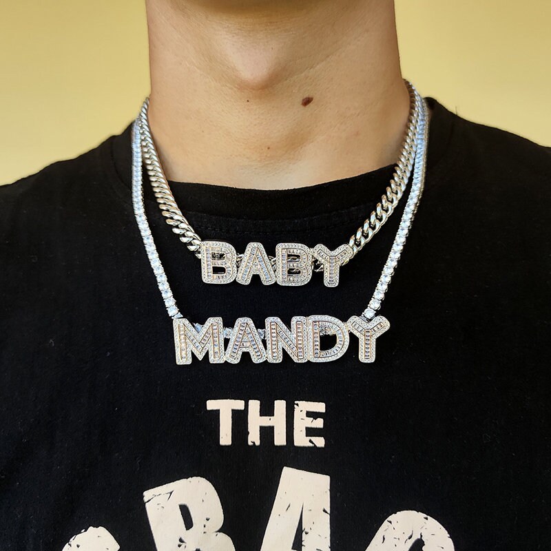 Mens True Pave 3a Flooded Ice Custom Name Bubble Letter Hip Hop Pendant Chain Necklace Bling Jewelz